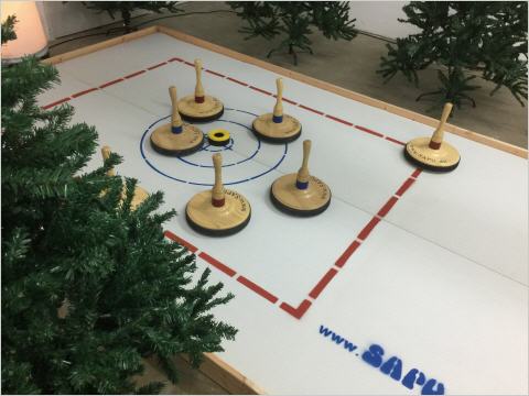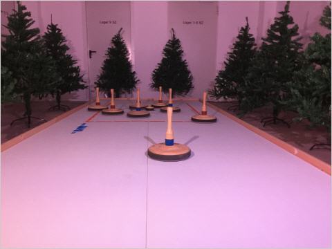 Diese Eisstockbahn zum Mieten hat die Länge von 10x2m, und die Eisstöcke einen Durchmesser von 8cm.