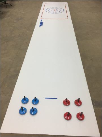 Diese Eisstockbahn zum Mieten hat die Länge von 5x1m, und die Eisstöcke einen Durchmesser von 8cm.