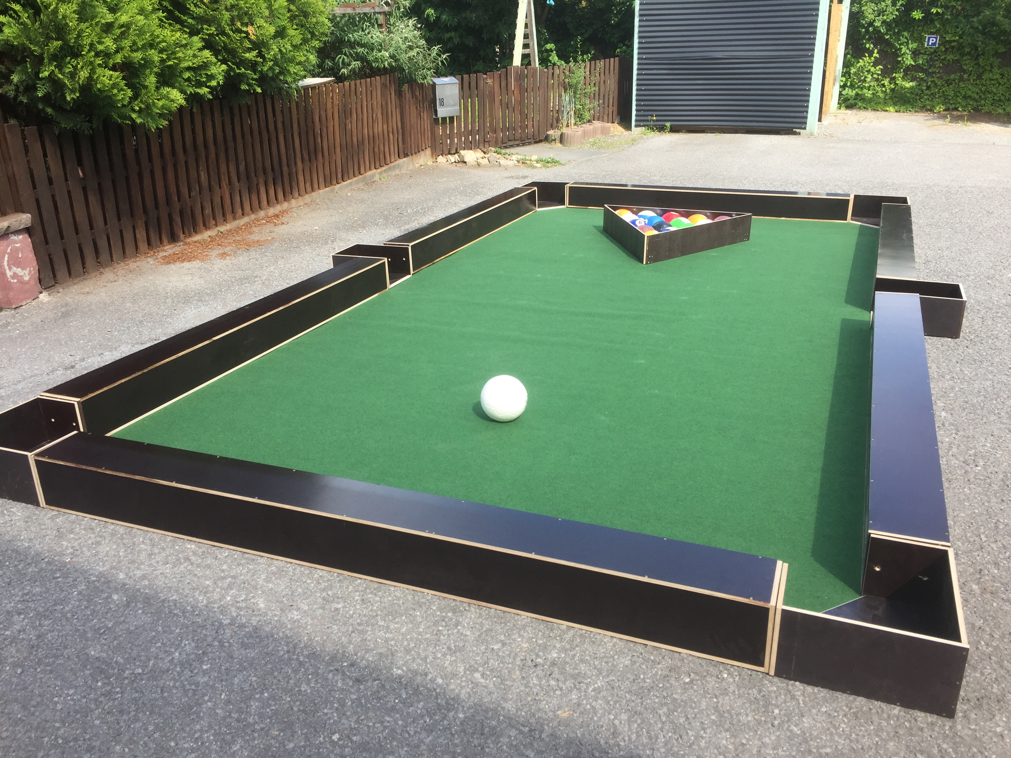 Fußball Billard ist ein neues tolle Fussballspiel, das nicht nur Fußballbegeisterte in seinen Bann zieht.. Wie beim richtigen Billard müssen hier mit der weißen "Kugel" dem weißen Lederballs,die halben, oder die vollen Bälle in den Löchern des Spielfeld versenkt werden. Es treten dabei zwei Teams gegeneinander an, die aus zwei - vier Spielern besteht an. Es können aber auch größere Teams gebildet werden. Der Spaß für Jung und Alt, auf Ihrem Event. Was beim normalen Billard der Queue ist, sind beim Fußball Billard die Füße der Mitspieler.